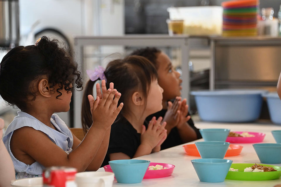 待ちに待ったお昼の時間!給食は園内手作りの栄養満点。食後は歯磨きもしっかり行います。